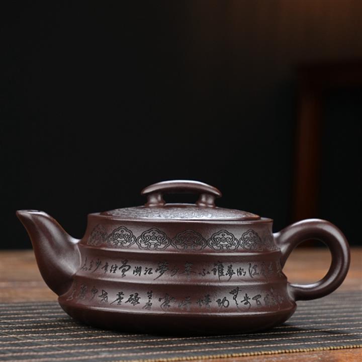 原礦老紫泥手工祥雲禪心德鐘茶壺POT6647