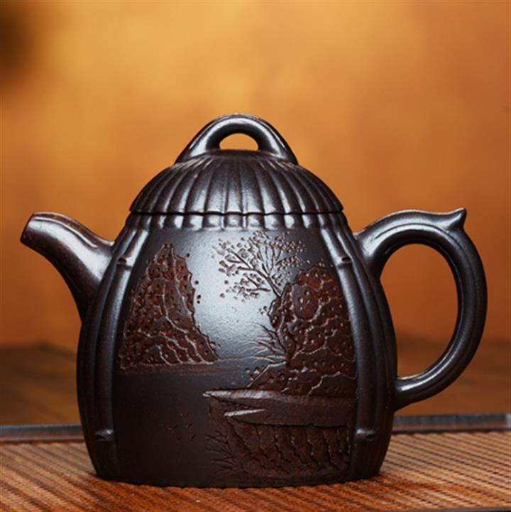 200cc原礦紫泥刻繪周盤茶壺POT8958