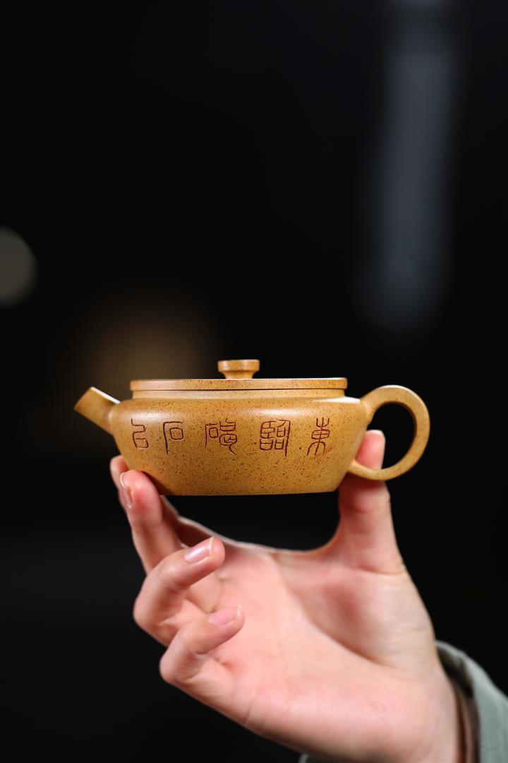 原礦黃金段泥六方劍流德鐘紫砂壺POT5947